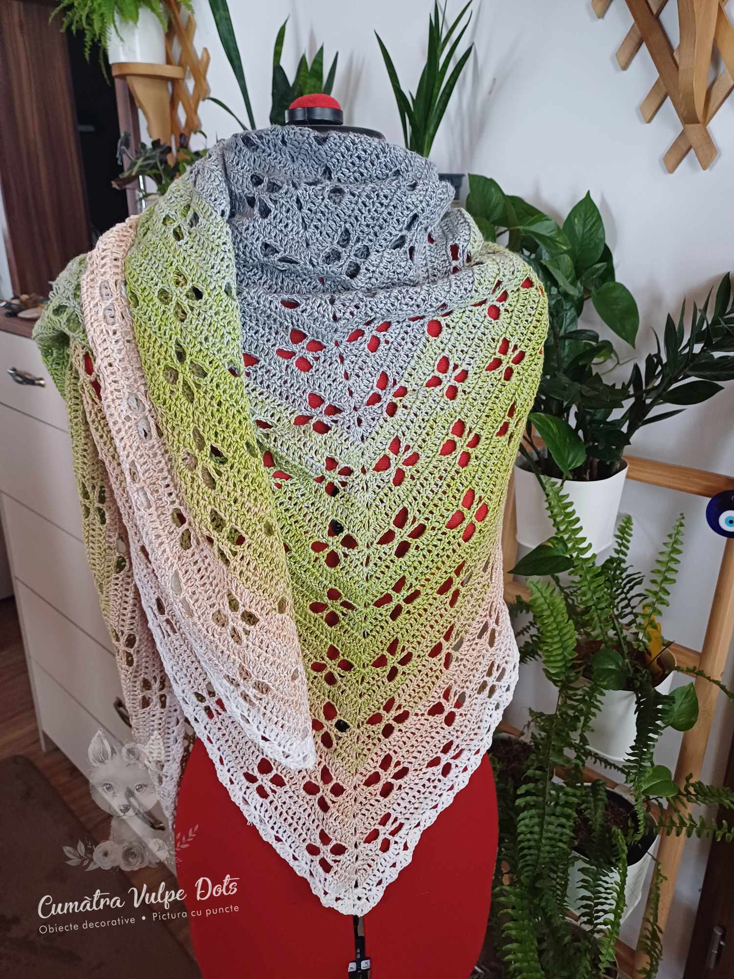 Cauți un cadou deosebit pentru o persoană dragă? Acest sal croșetat cu multă pasiune poate fi alegerea perfectă! Făcut manual cu grijă, acest sal adaugă un strop de căldură și eleganță oricărei ținute.